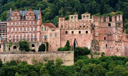 O local onde o Castelo de Heidelberg foi construído, alguns quilômetros ao sul de Frankfurt, já era habitado há muito tempo. O nome Heidelberg, no entanto, só iria surgir em 1196. A primeira construção existente neste local era propriedade do Duque Ludwig Von Bayern, quando este foi investido como Palatino, em 1225. O Palatinato era um sistema de governo onde a maior autoridade era exercido pelo chamado Palatino, um cargo semelhante a de governador, com poderes executivos e judiciários sobre toda determinada região. Heidelberg era cidade sede de um palatinato. |