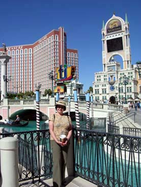 Na foto ao lado vê-se os canais do hotel Venetian, onde turistas podem passear de gôndola. Mais ao fundo o grande prédio do hotel e cassino Treasure Island e à direita o painel do cassino Aladdin, que infelizmente já foi demolido. Já estivemos em Vegas cinco vezes e nos hospedamos em hotéis diferentes quase todas as vezes. Se você está em dúvida onde ficar sugerimos pesquisar bem, porque custos podem variar muito de um hotel para outro. E se não faz questão do luxo dos super hotéis e cassinos, mas não abre mão de um bom quarto limpo procure alguma coisa nas redes