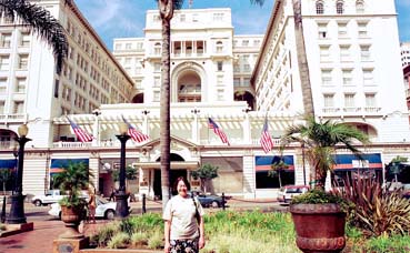 A principal avenida da cidade é a Broadway, onde fizemos esta foto. As árvores que podem ser vistas no lado direito são parte dos jardins que decoram o Horton Plaza Shopping Mall, considerado o coração da moderna San Diego. Pouco mais ao sul fica o tradicional bairro Gaslamp Quarter, área de 16 quadras onde antigamente funcionavam casas de jogo, bordéis e coisas do gênero. A área escapou da demolição, foi reformada, e agora está bem melhor freqüentada, com muitos bares, galerias de arte alternativa, e pequenos restaurantes, alguns com música ao vivo. Indicado especialmente para quem quer um programa noturno. |